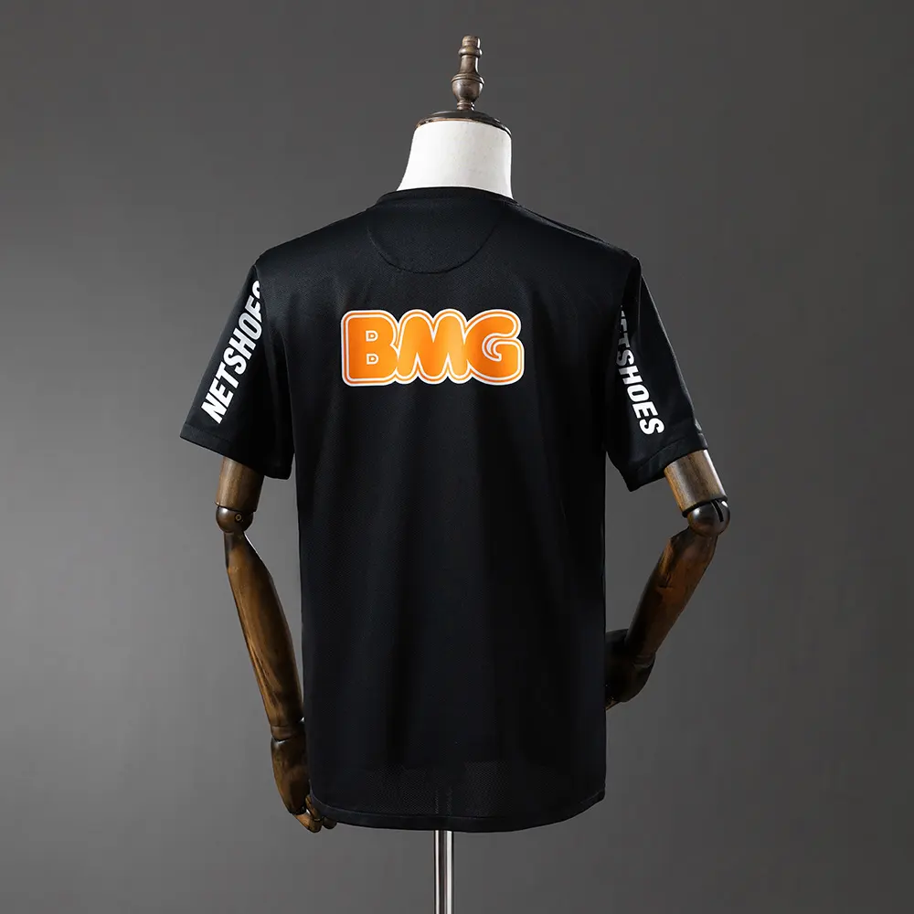 A Camisa Retrô Santos Away 2012/13 – Masculina revive uma das fases mais marcantes do Peixe na década de 2010. Com o clássico visual preto elegante, o modelo traz o icônico patrocínio Banco BMG em destaque no peito, além dos detalhes tradicionais que marcaram aquela geração.